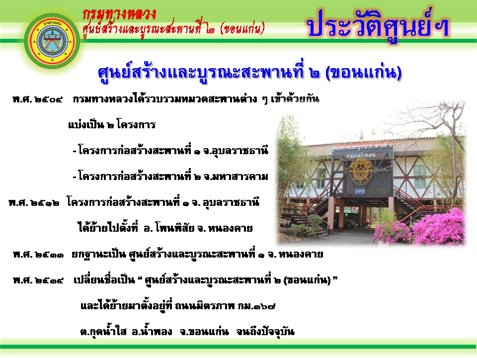 เนื้อหาเพจ : ประวัติและความเป็นมา ศูนย์สรา้งและบูรณะสะพานที่ 2 (ขอนแก่น)
